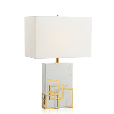 Modern moda mermer kapalı ışık dekoratif masa lambası kumaş gölge için yatak odası aydınlatması