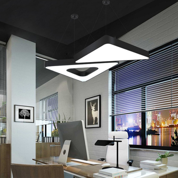 Lampu gantung Batten LED Modern, desain segitiga hitam dengan langit-langit PS besi dalam ruangan untuk kelas kantor ruang makan ruang ganti Gym